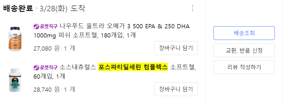 지난 3월에도 샀는데 뇌가 좋아지는 건 잘 모르겠지만, 70 넘으신 부모님께도 보내드리는 것이다. 국내에서 광고하는 약보다는 좋다고 해서 구매했고, 이 가격이 23000원에서 28000원까지 왔다 갔다 한다.