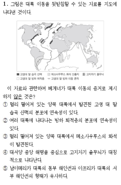 - 대륙이동설 관련 기출문제