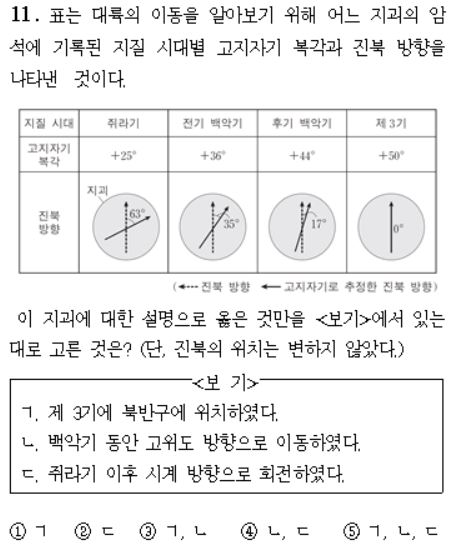 대륙이동설 관련 기출문제