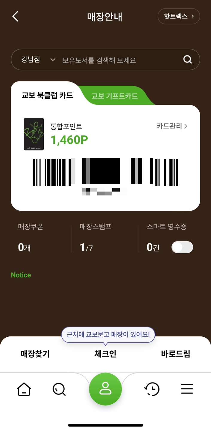 가령 강남 교보에 있으면 강남 교보에 있다고 나온다.