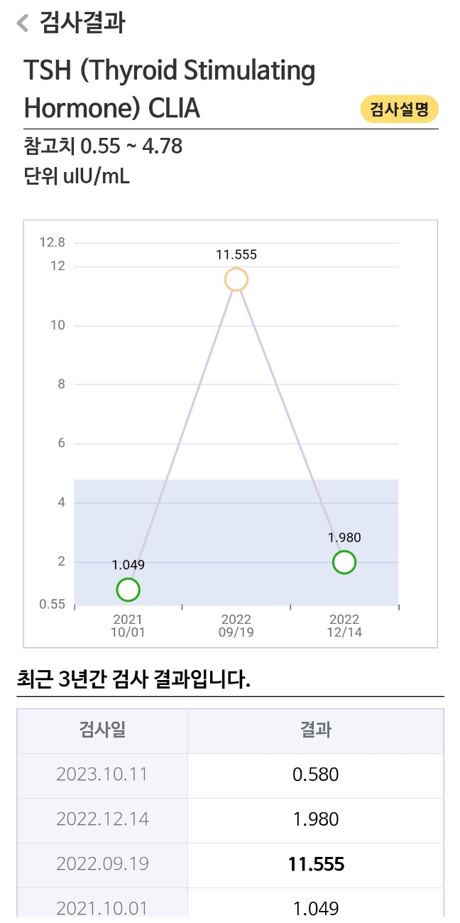 TSH CLIA 수치가 이렇게나 올라갔었다.