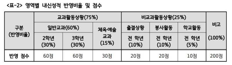 아래 점수가 합쳐져서 200점 만점이 되는 것이다.