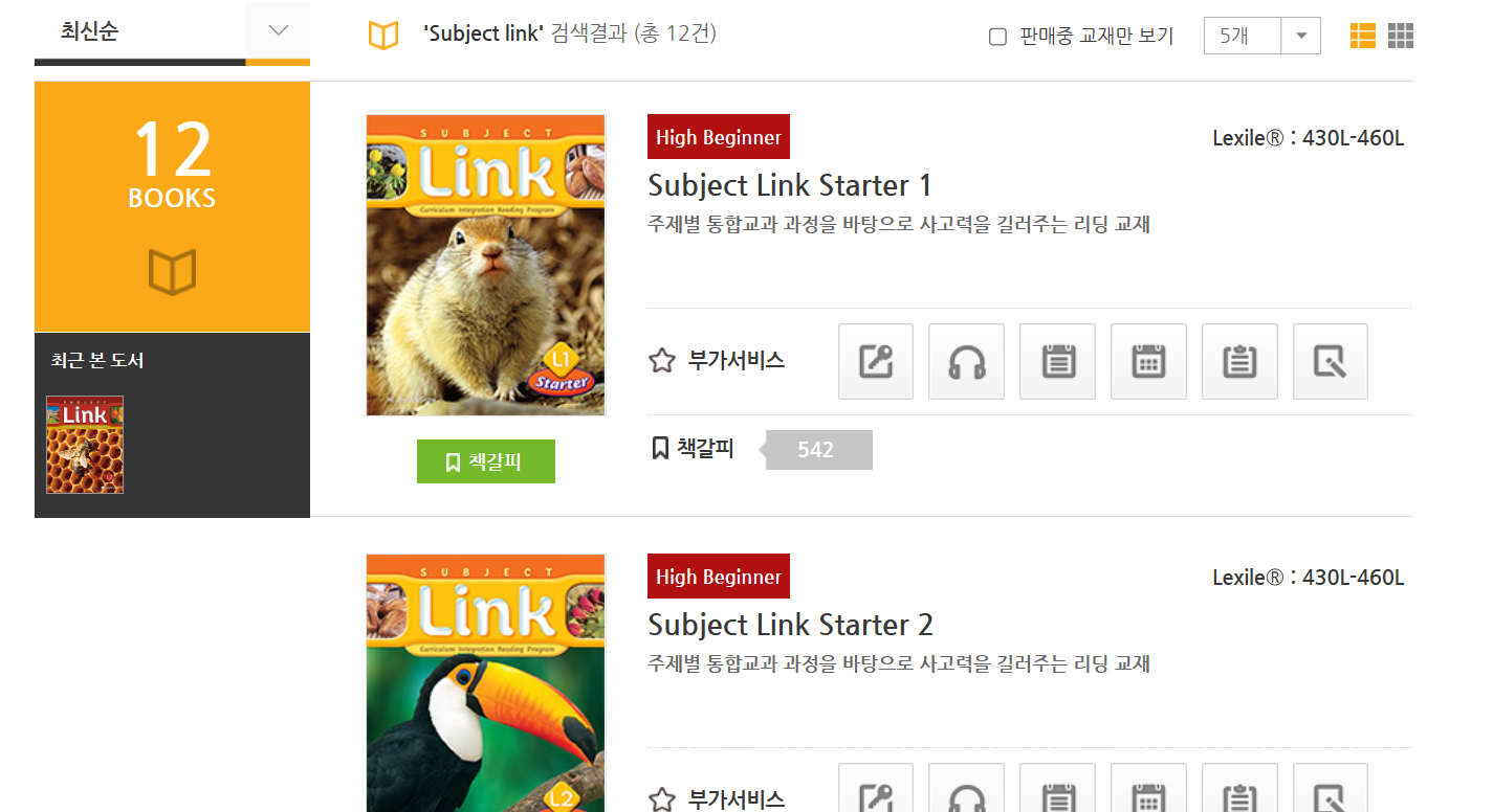 능률 사이트에 들어가서, 검색에 Subject link라고 치면 전체 시리즈가 나온다.