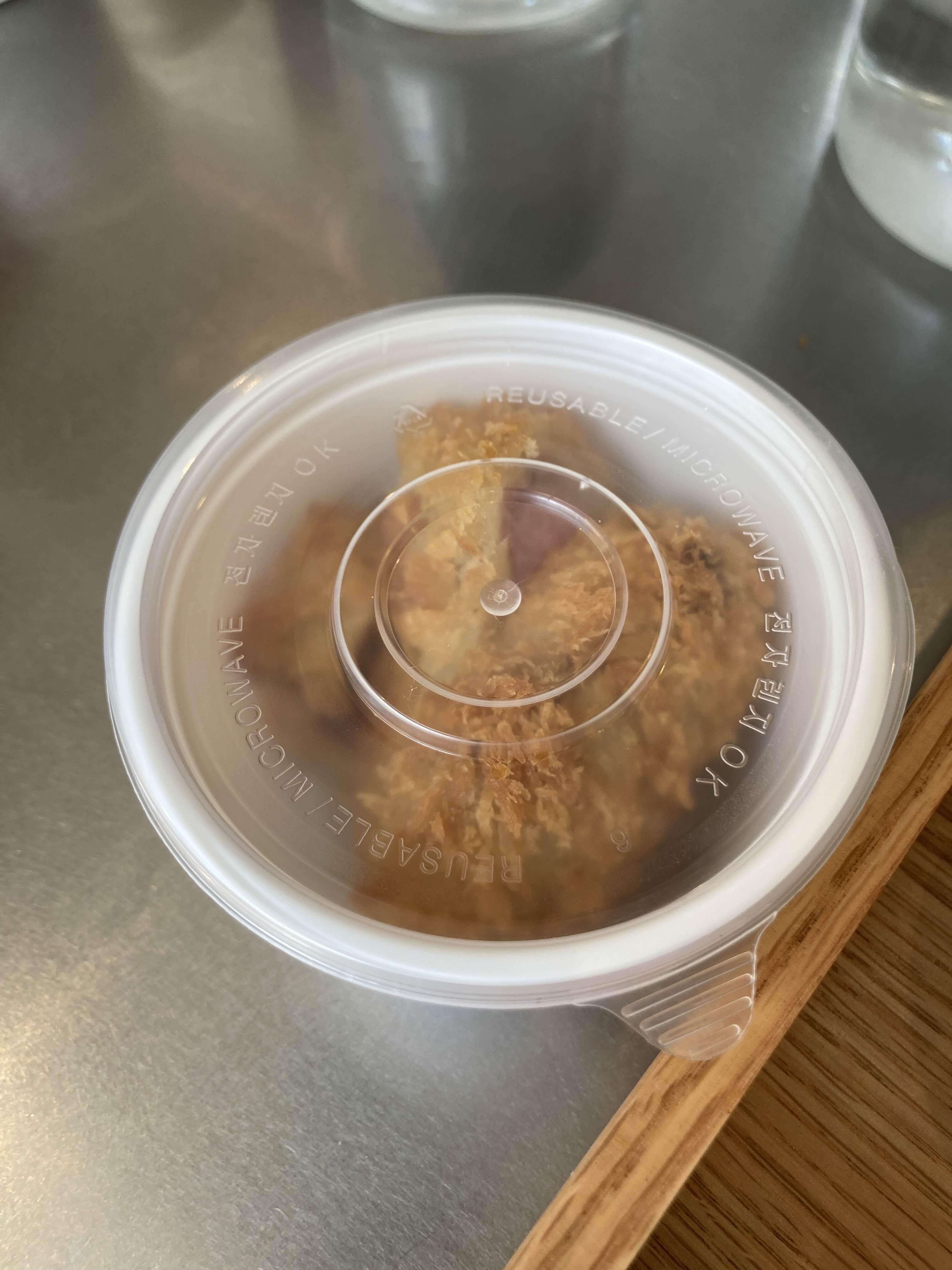 남은 거 싸갈 수 있냐 물었더니 용기를 제공해줘서 담아왔다.